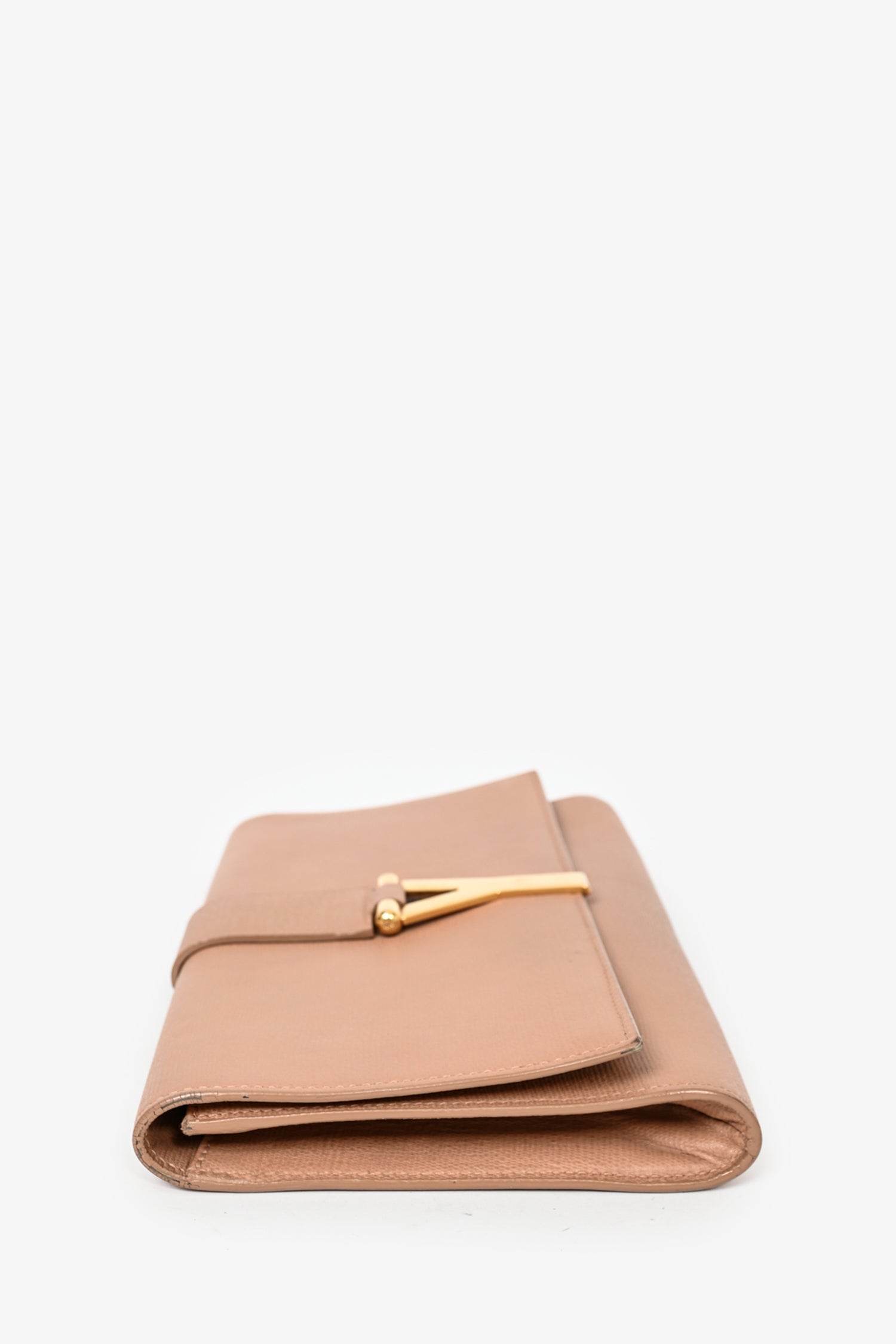 Yves Saint Laurent Beige Leather Gold 'Y' Ligne Clutch