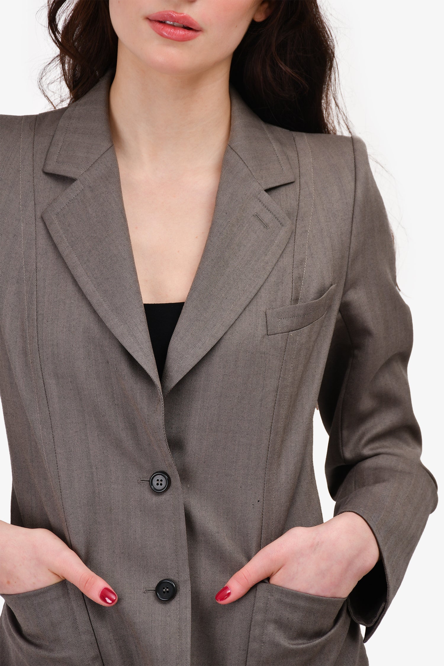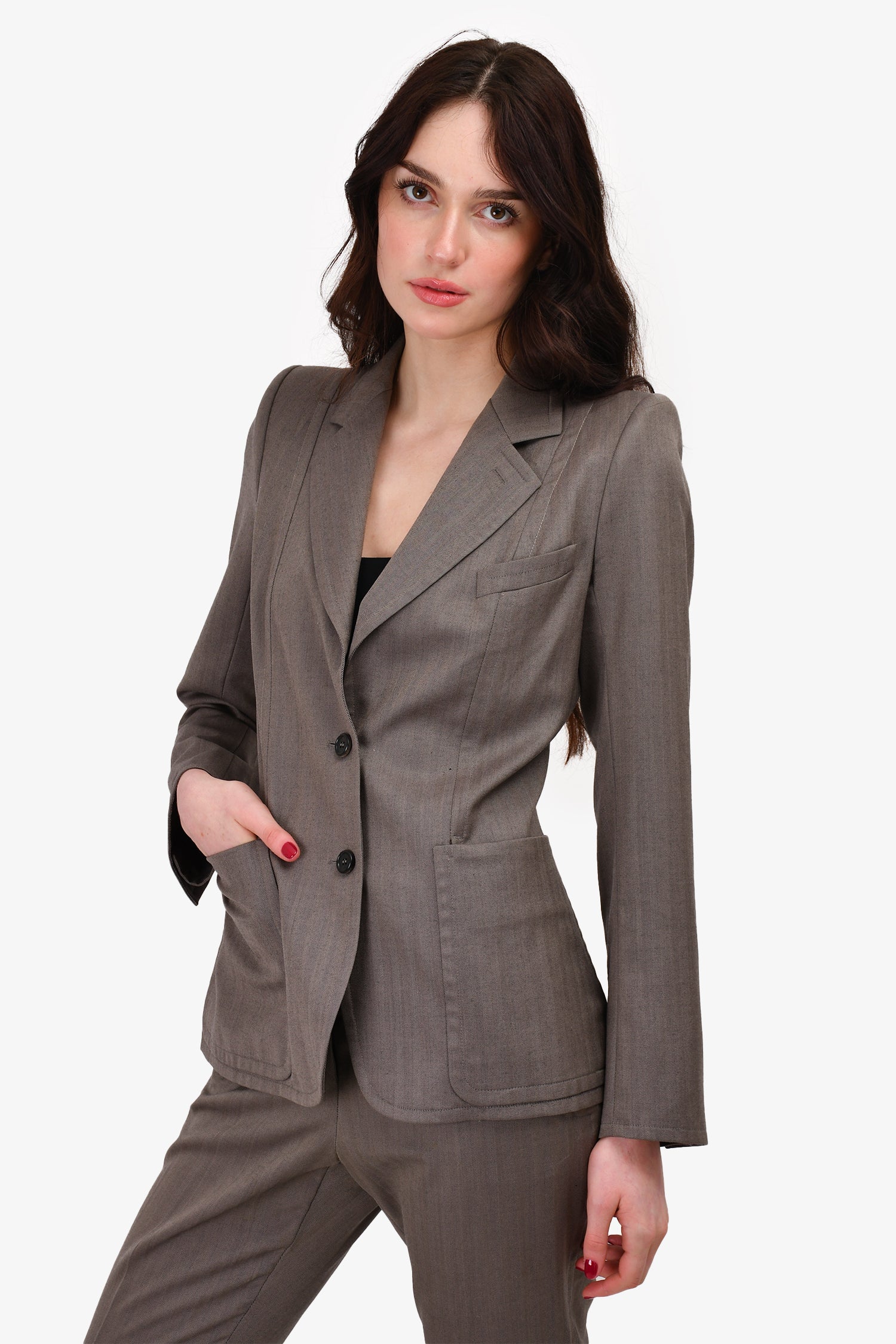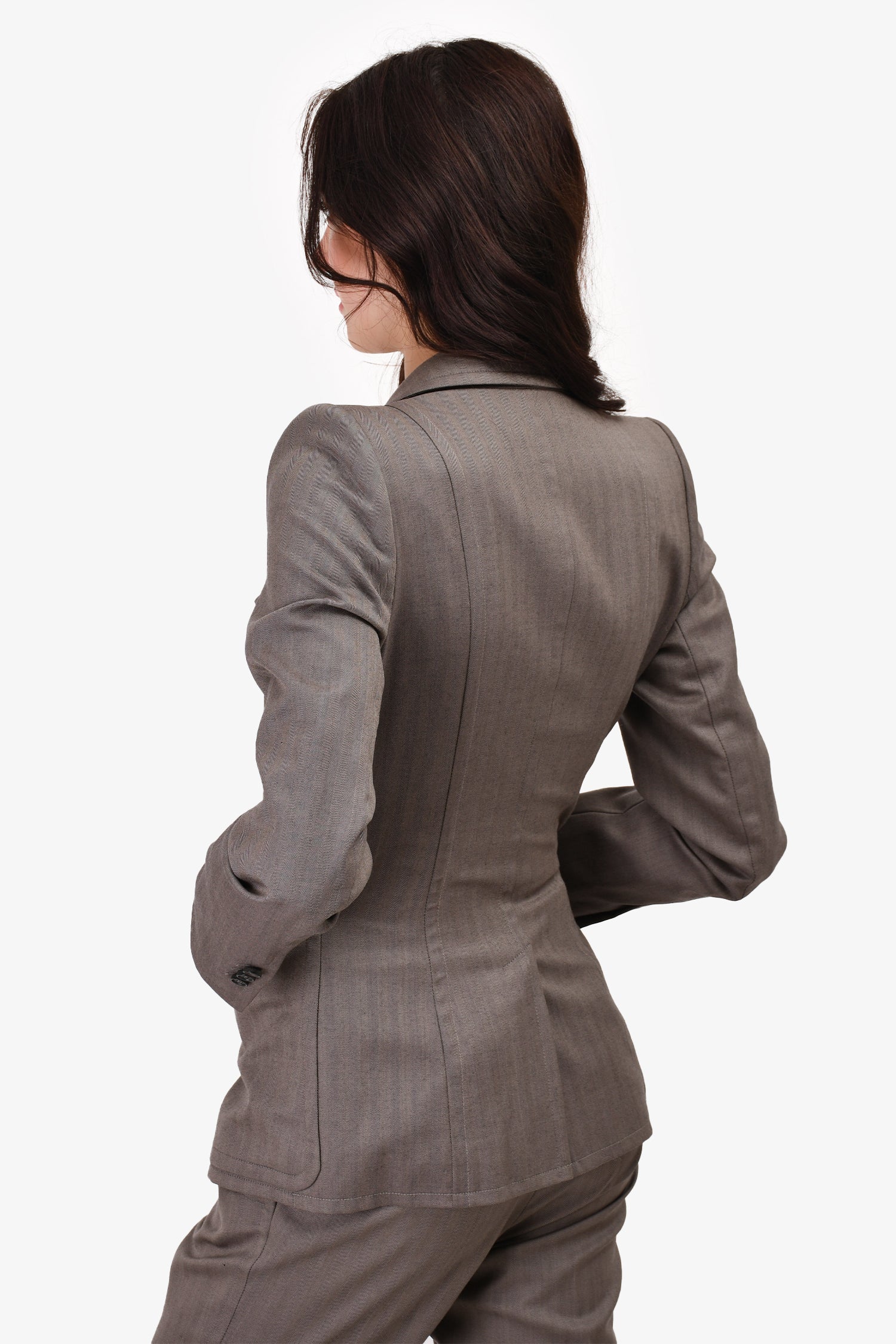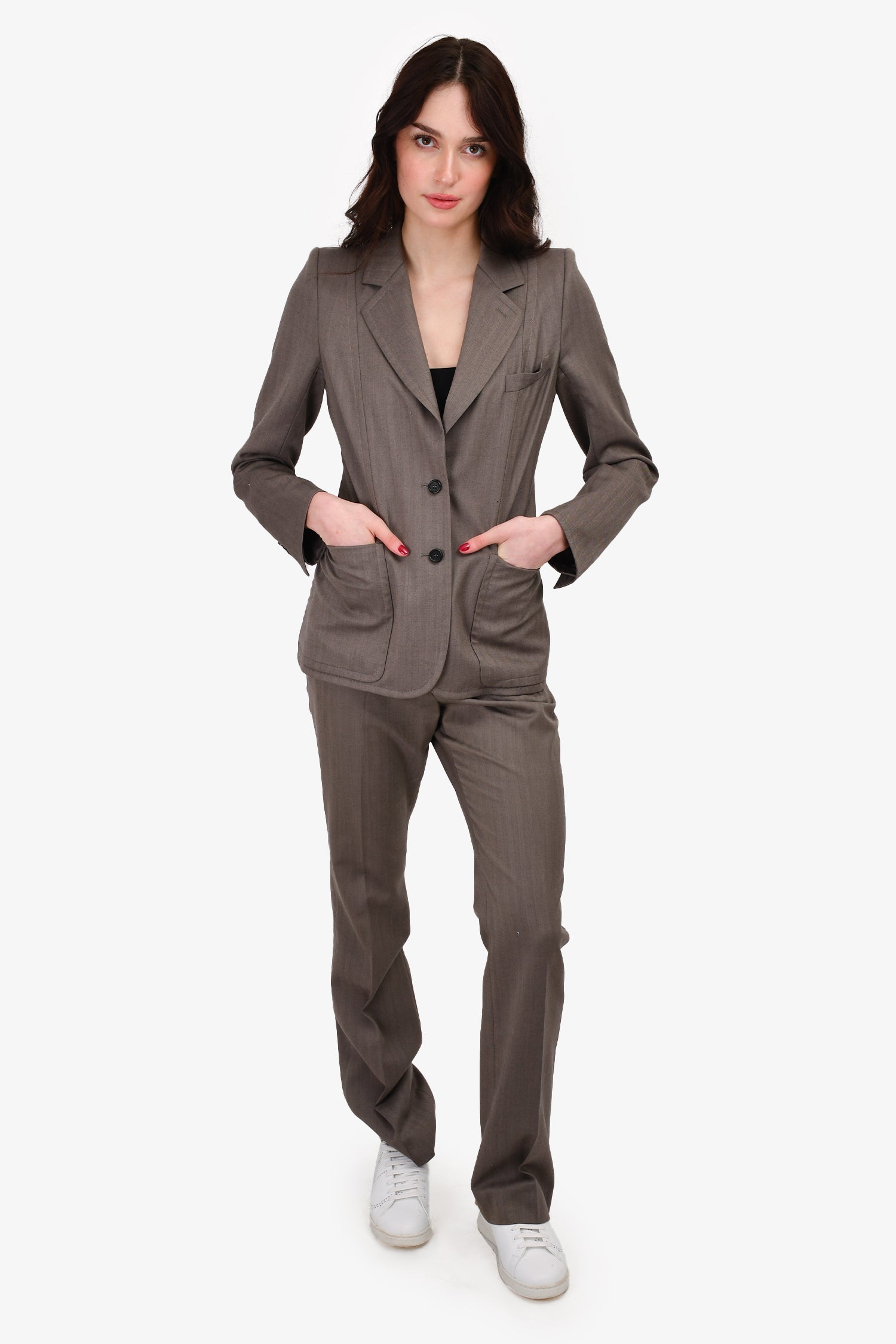 Yves Saint Laurent Grey Wool Padded Shoulder Blazer + Pants Set Size 42