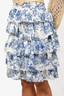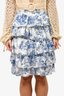 Zadig & Voltaire Blue/White Printed Silk Ruffle Skirt Size 36