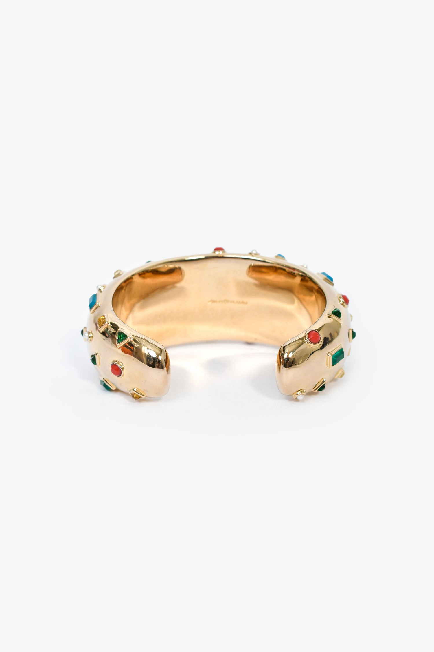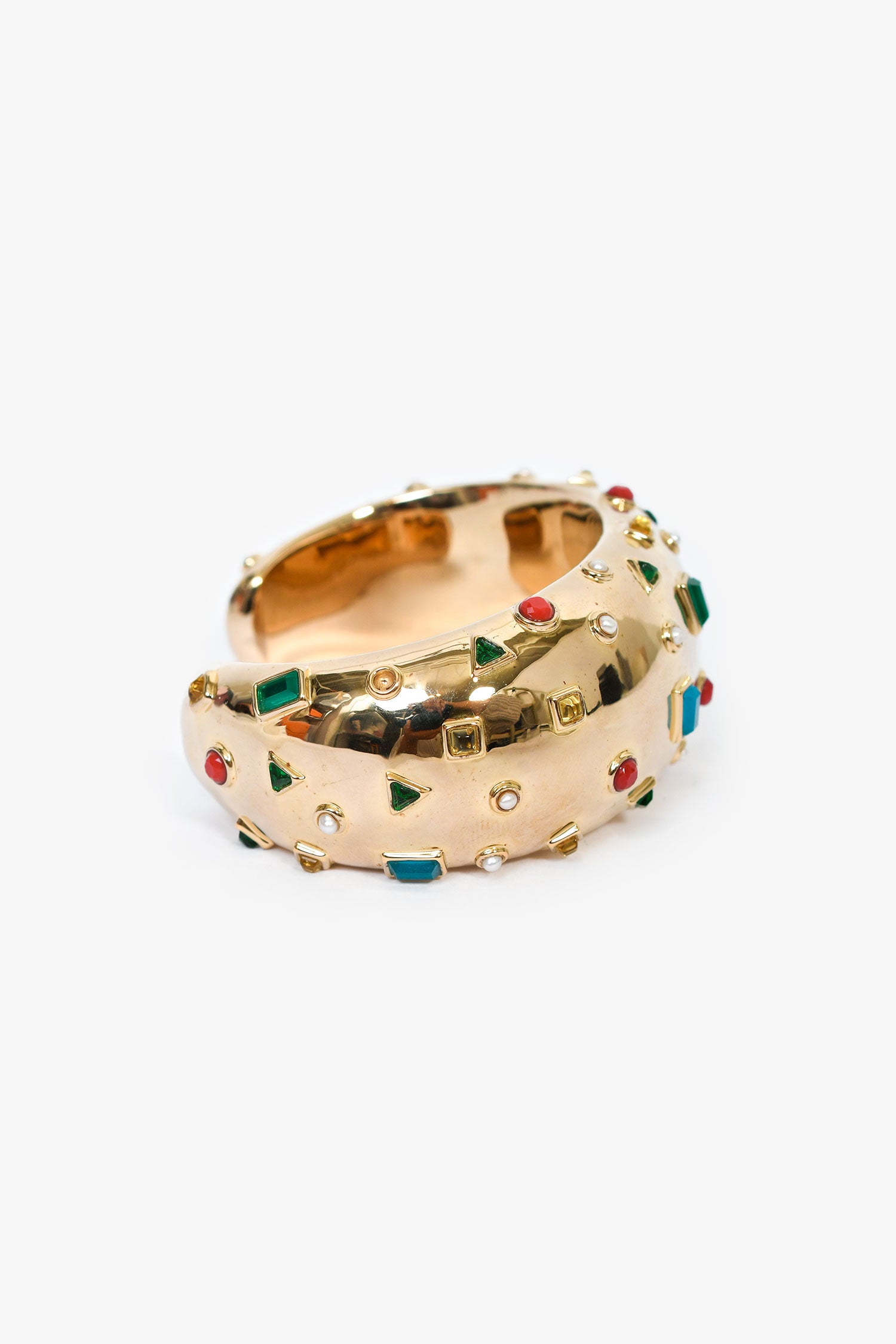 Estimated Retail Price: $750Size/Dimensions: 6" interior circumferenceContent: Gold-tone hardware and multi-coloured gemsCondition: This item is in good pre-loved condition with hairline marks on the hardware.