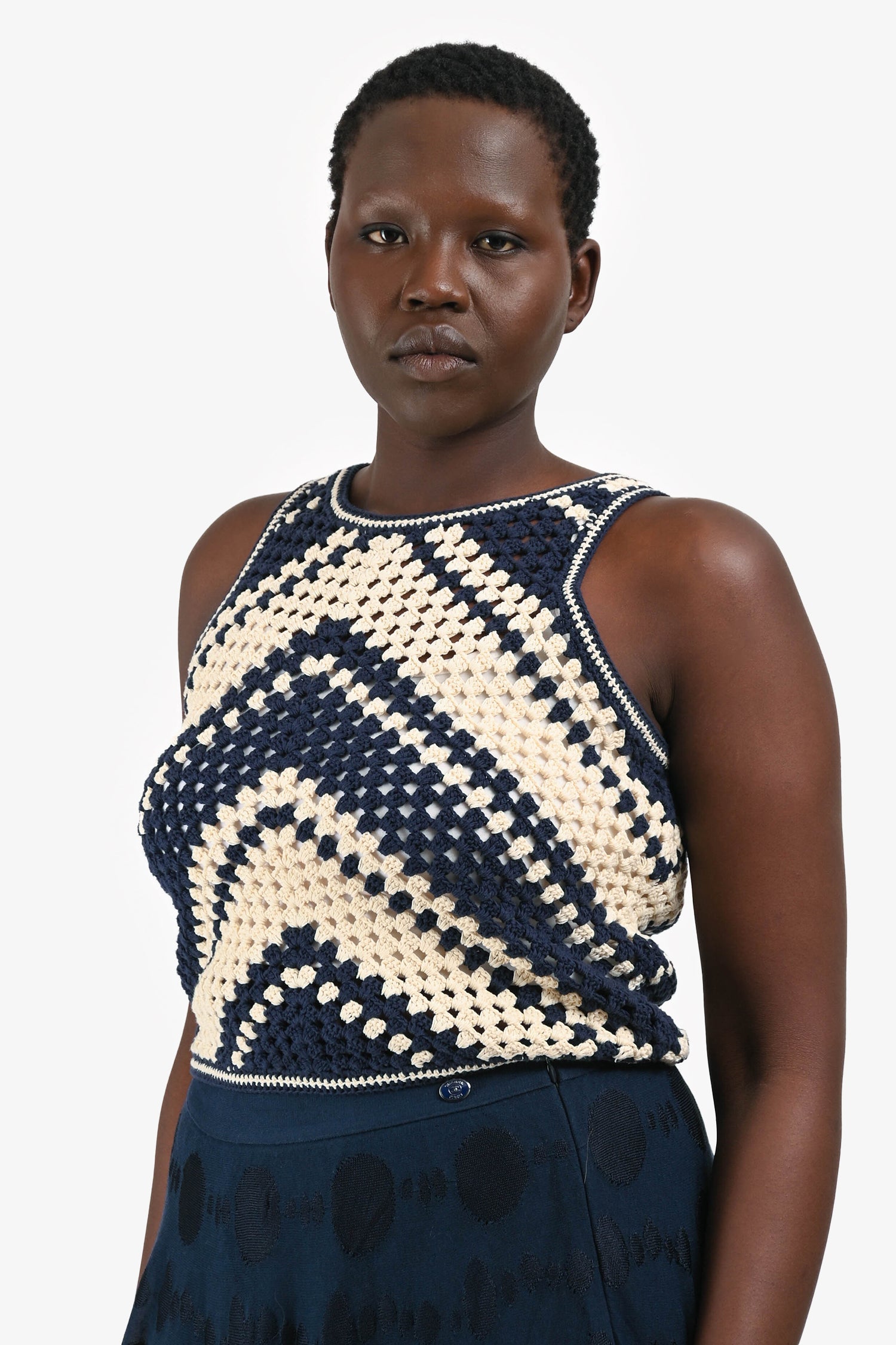 Zimmerman White/Navy 'Chintz' Hand Crochet Tank Top Size 3