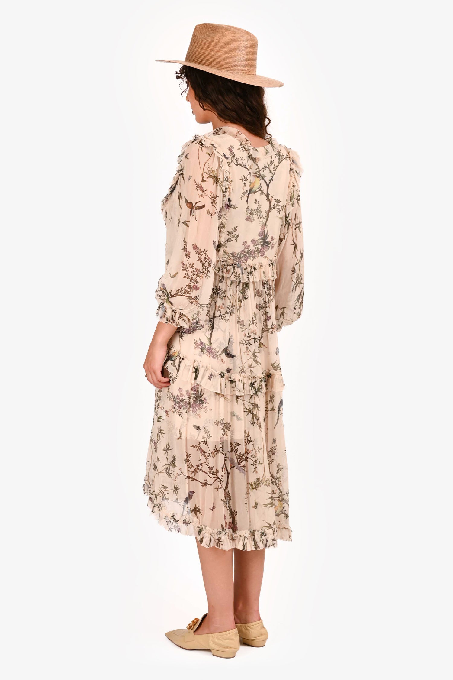 Refresh availabilityZimmermann Beige/Multicolour Floral Maxi Dress. Includes interior tonal slip dress. Front tie closure on the neckline. Long sleeves with elasticized cuffs. Tonal stitching.