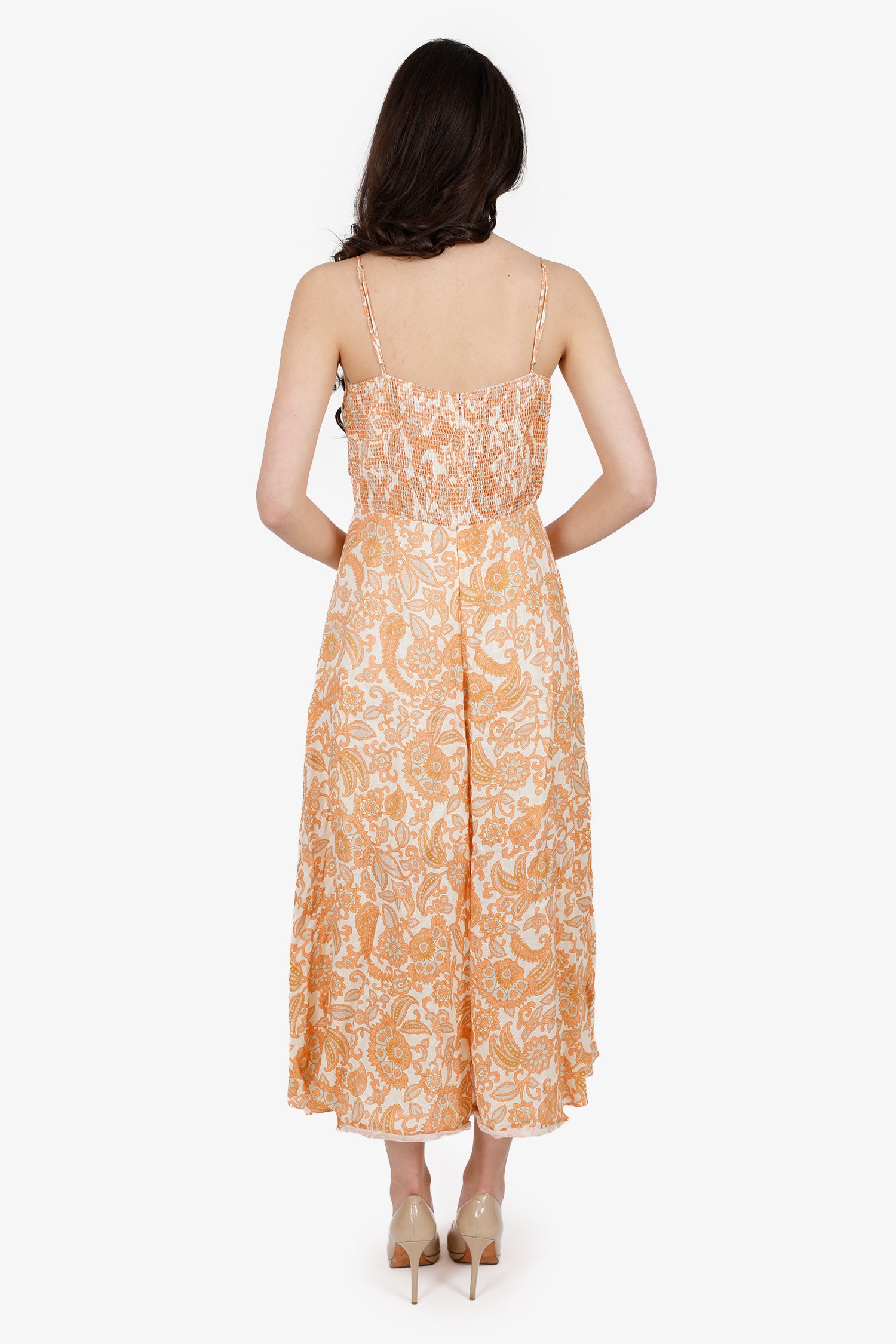Zimmermann Beige/Orange Linen Peggy Off Shoulder Tie Dress Size 2