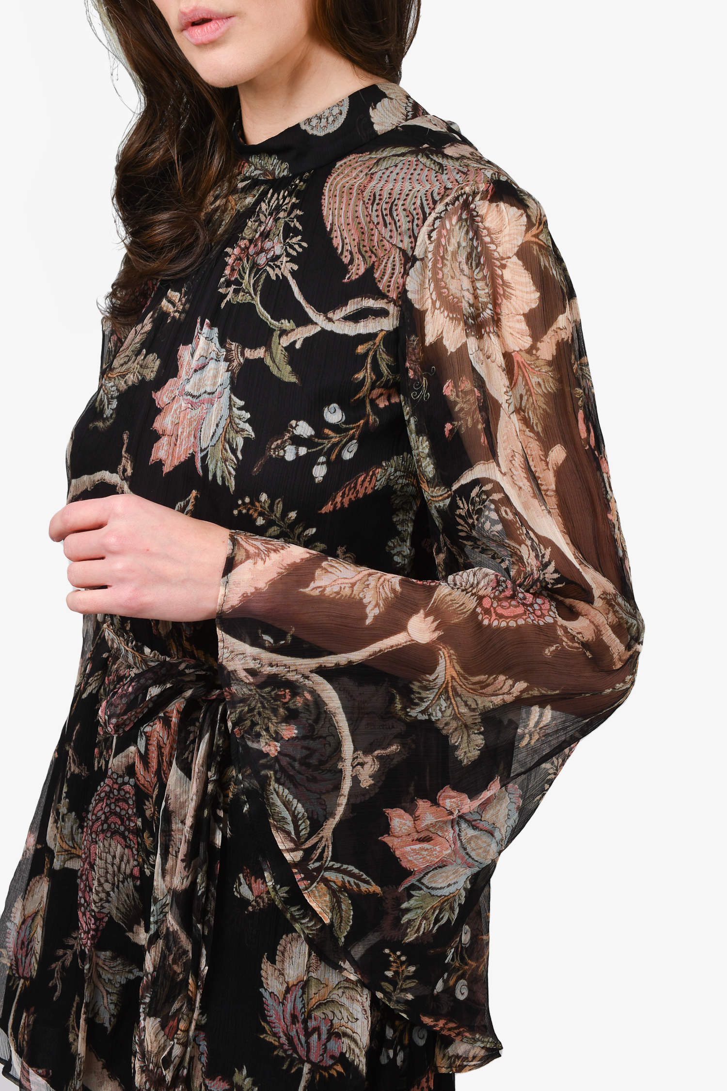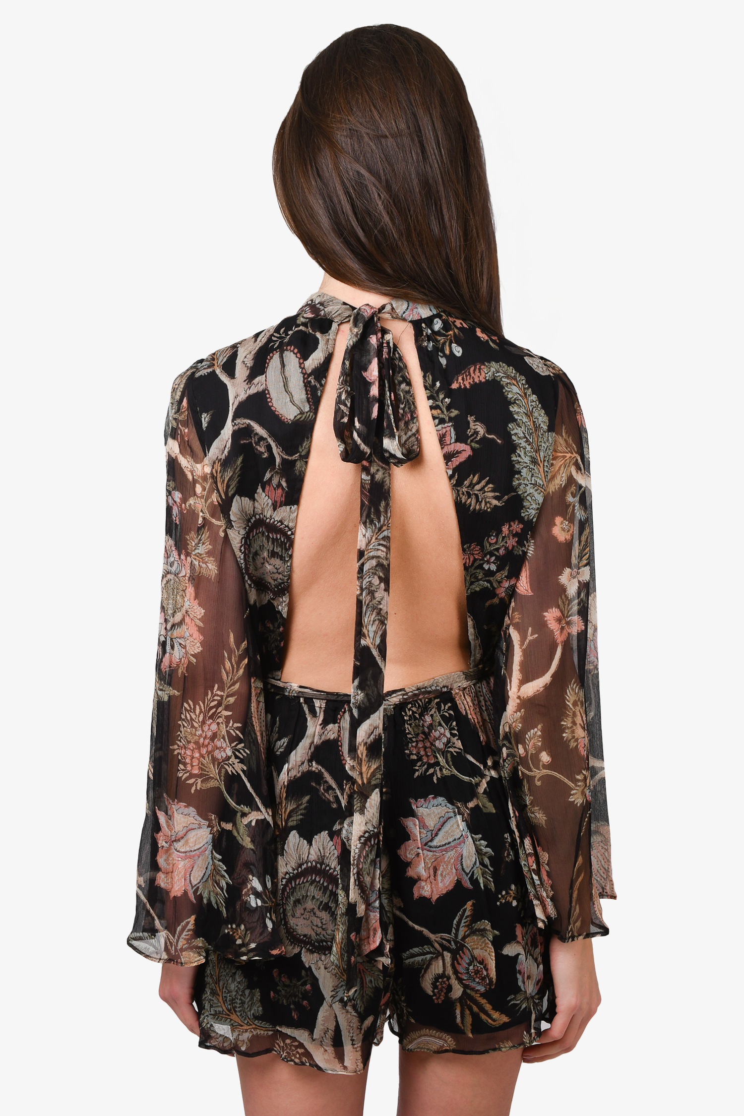Zimmermann Black/Green Sheer Silk Patterned Romper Size 0