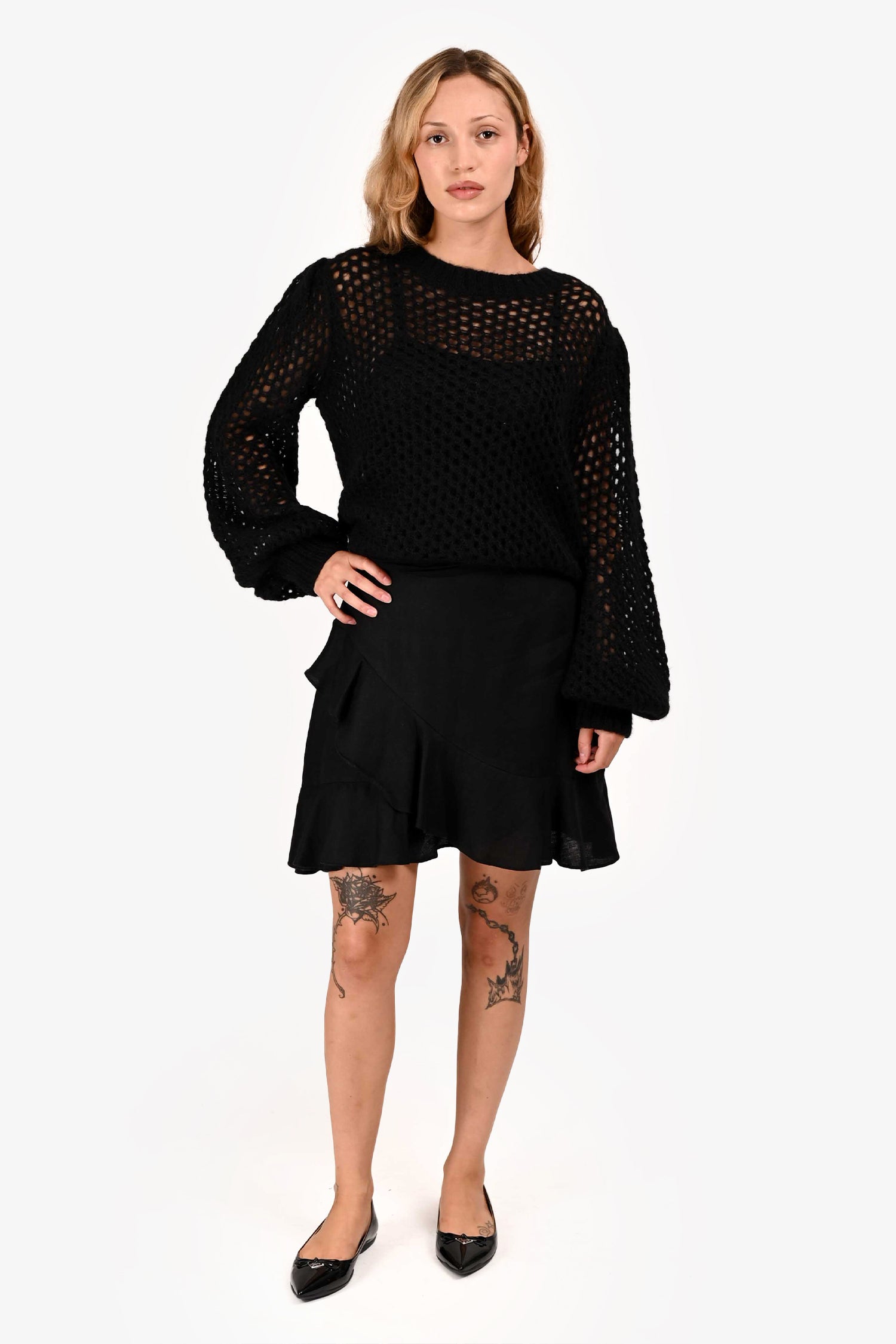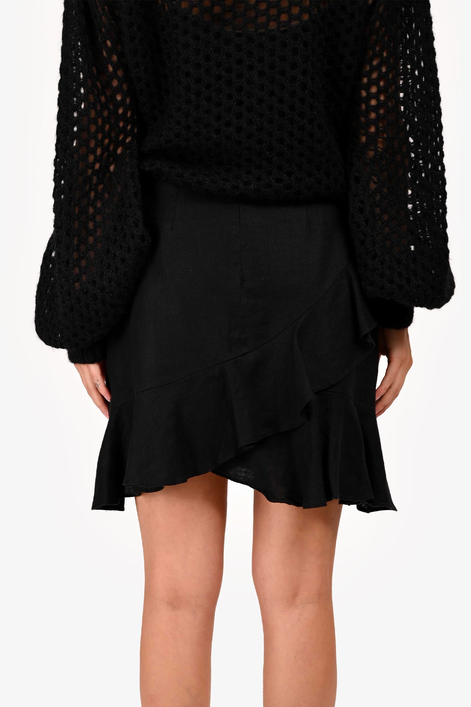 Refresh availabilityZimmermann Black Linen Ruffled Mini Skirt. Rear zip closure.