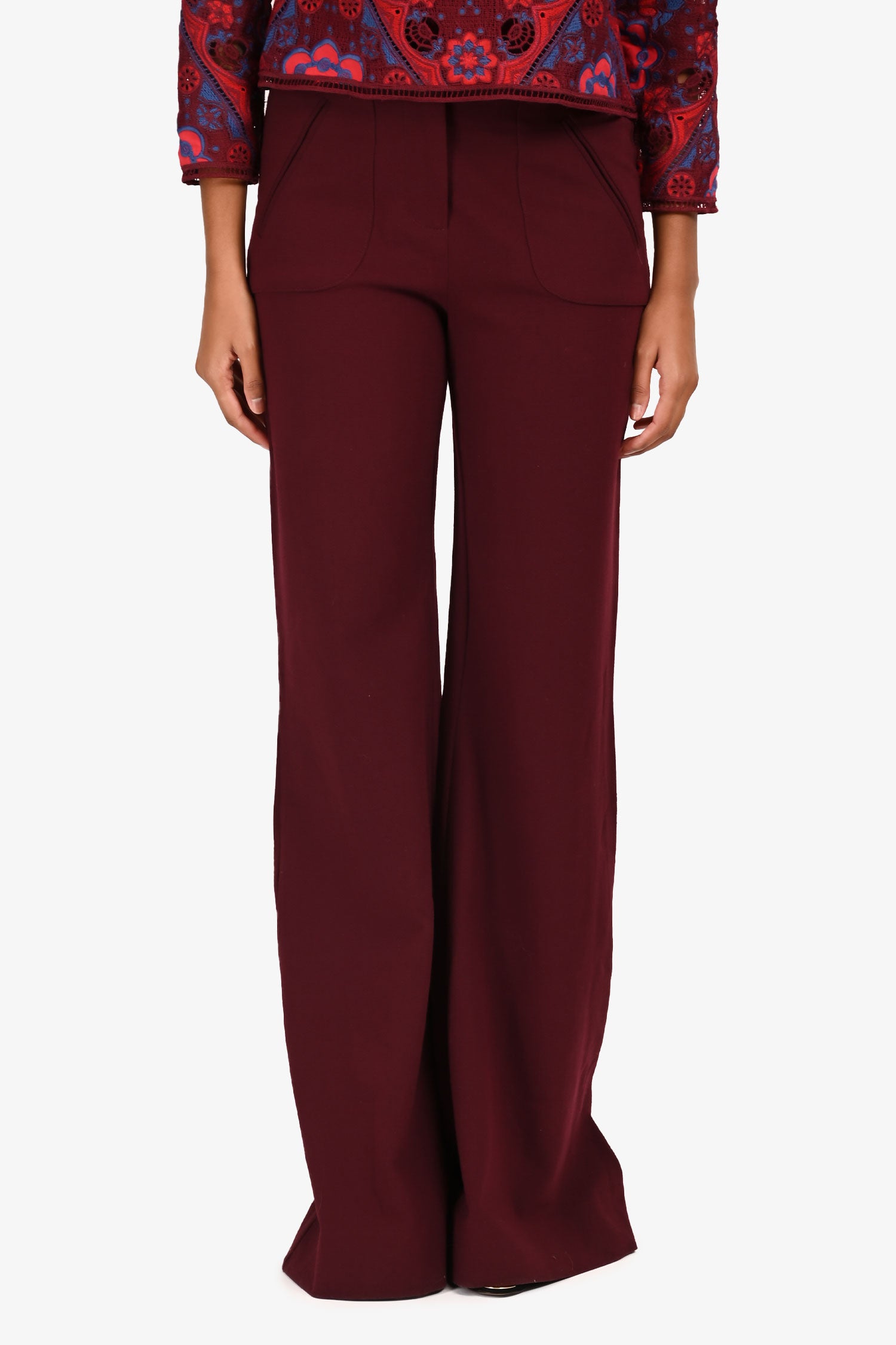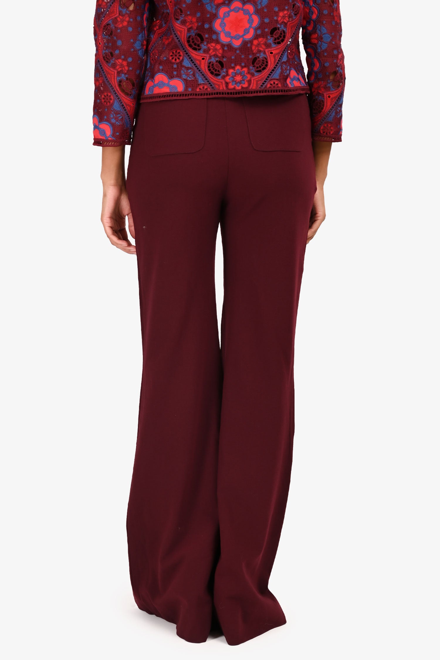 Zimmermann Burgundy High Waisted Wide Leg Trousers Size 0