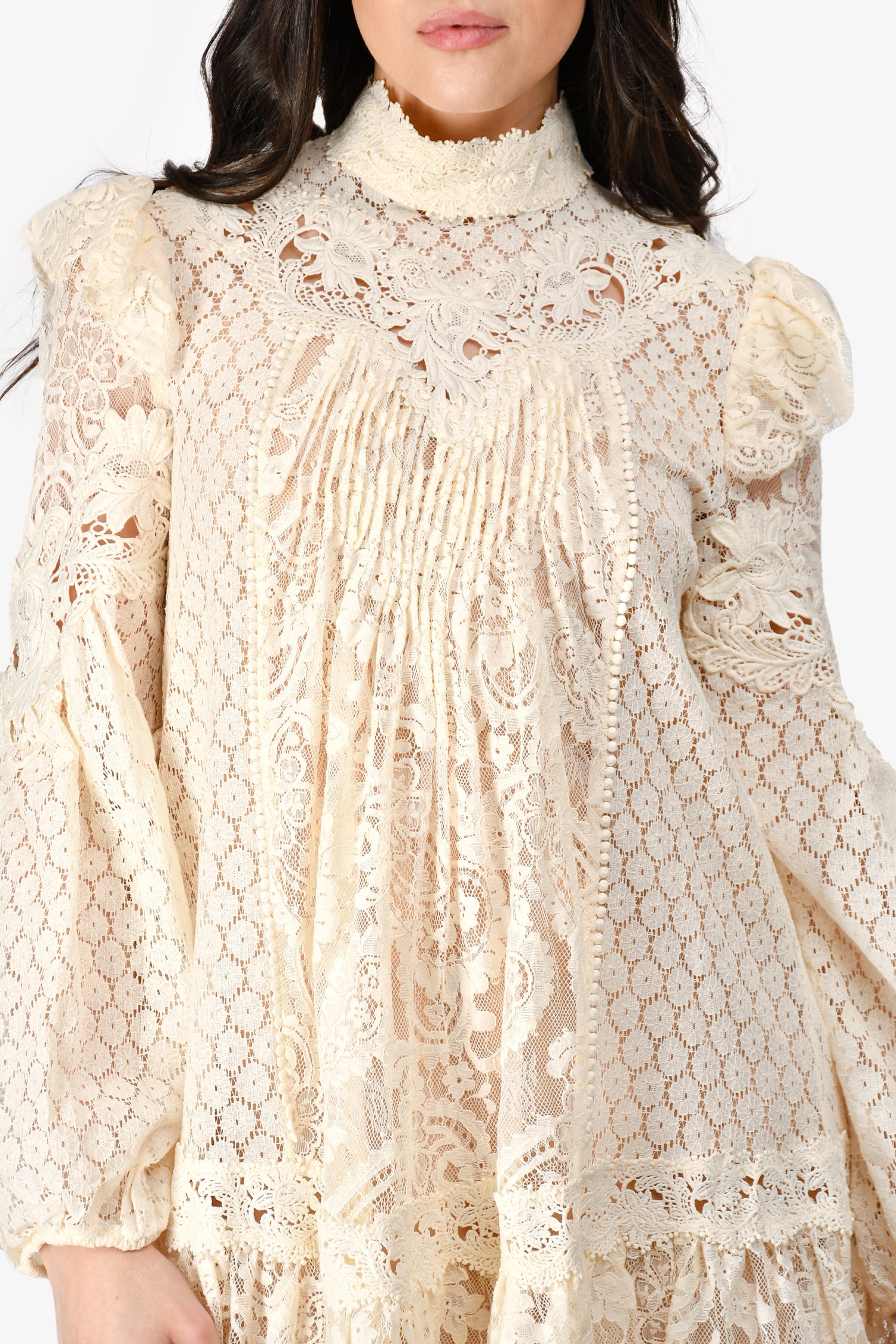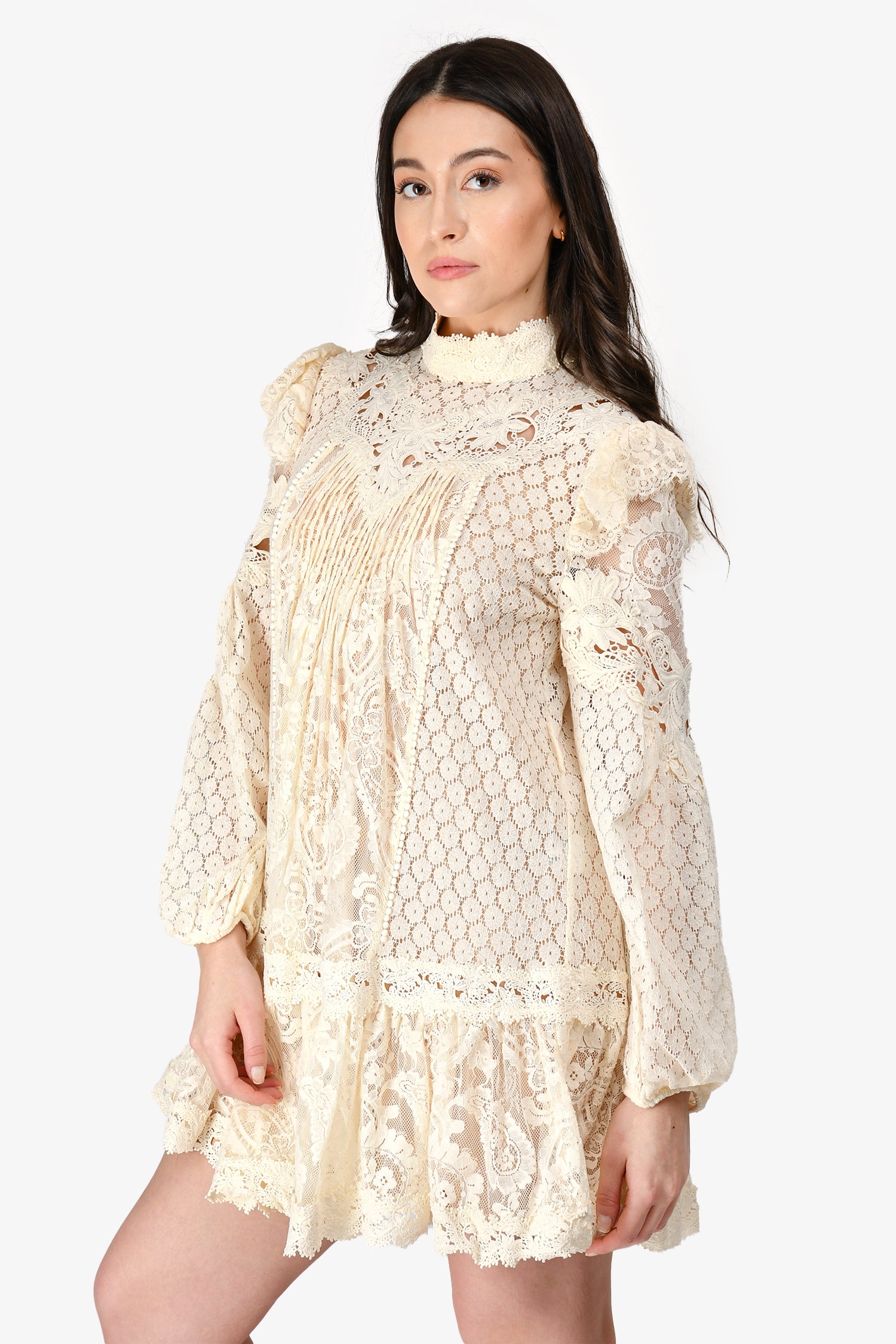 Zimmermann Cream Lace Mock Neck Dress Size 1