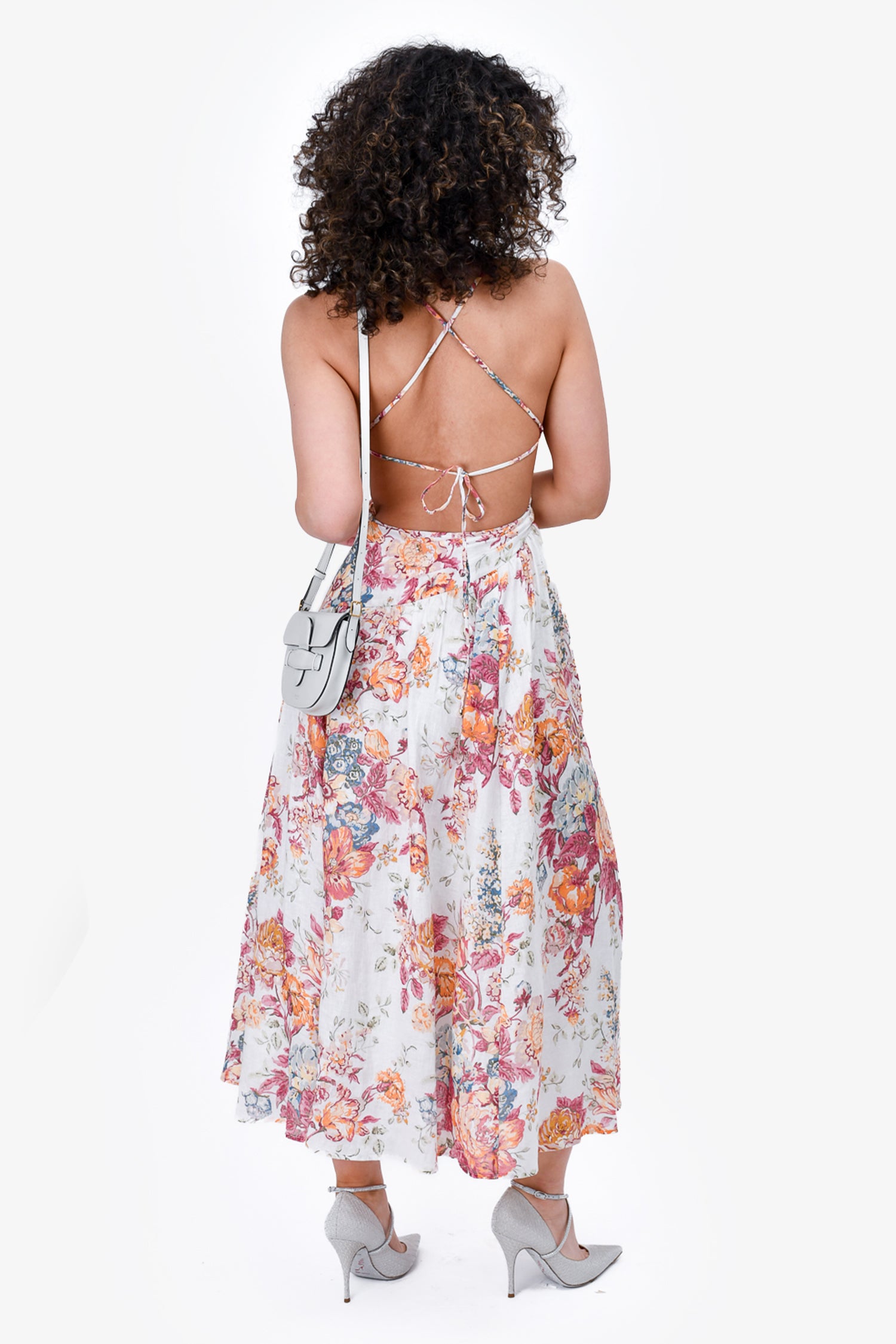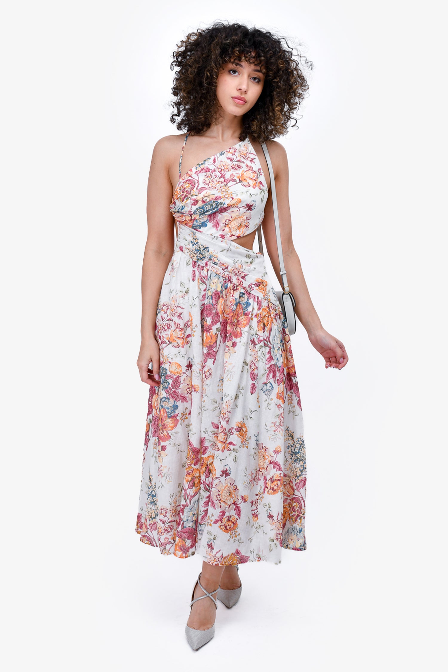 Refresh availabilityZimmermann Cream/Orange Cut Out Strappy Floral Printed Midi Dress. Side zip and hook closure. Lined.