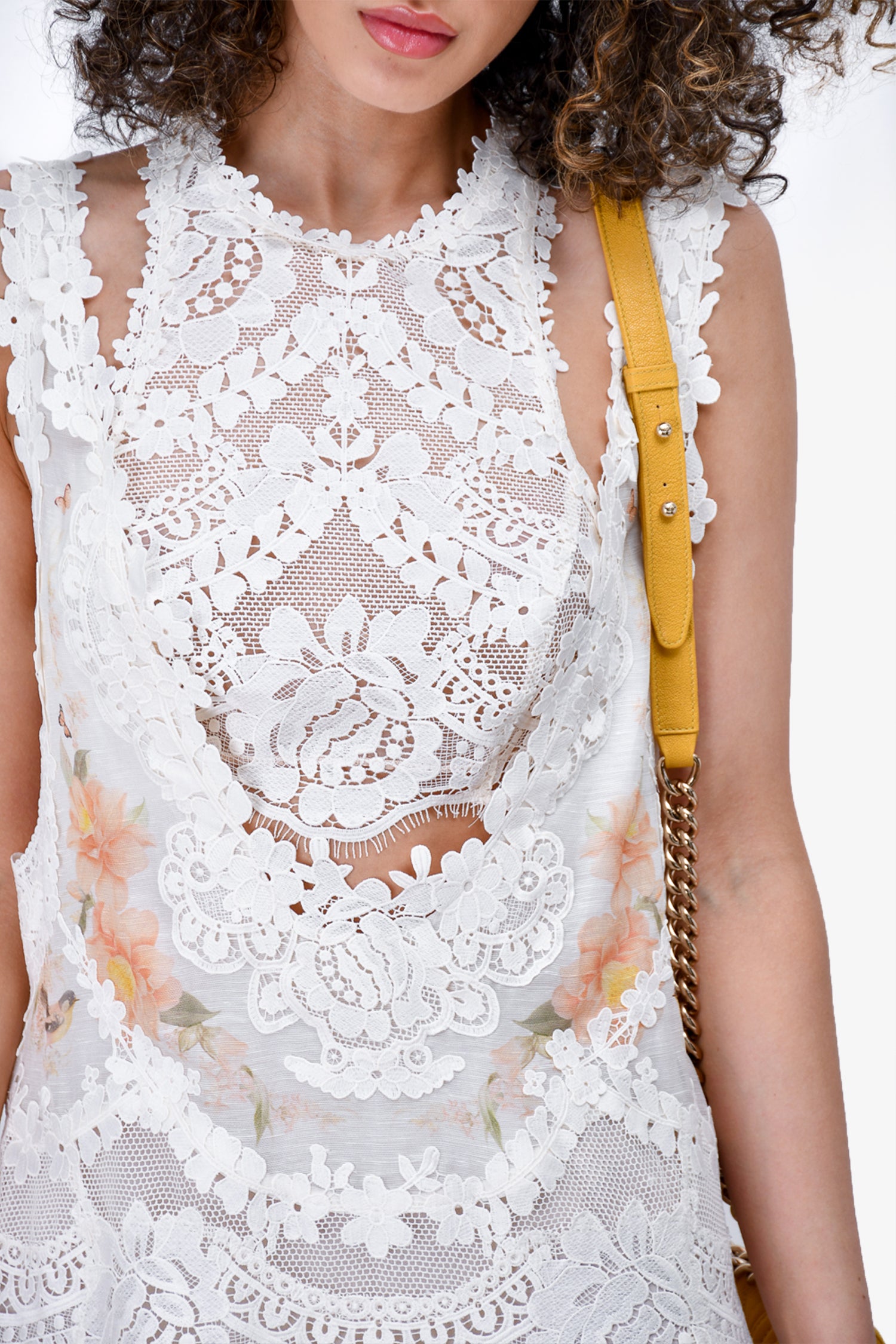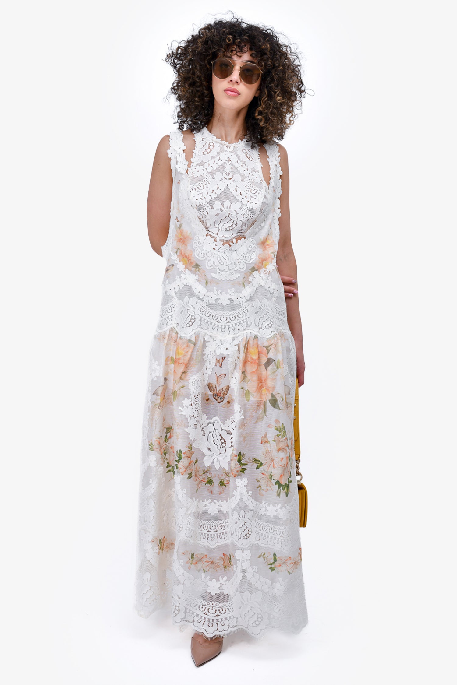 Refresh availabilityZimmermann Cream/Peach Linen/Silk Floral Lace Embroidered Dress. Optional zippered top. Lined.
