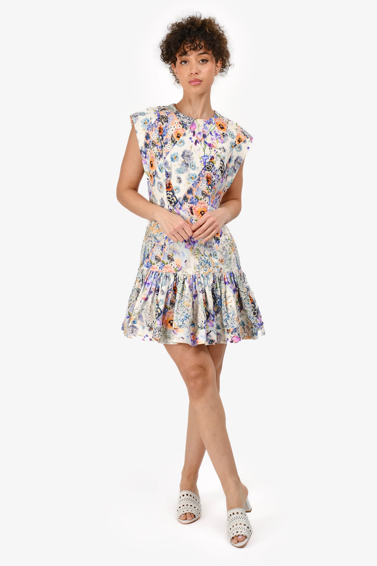 Zimmermann Cream/Purple Multicolour Printed Ruffled Hem Mini Dress Size 2