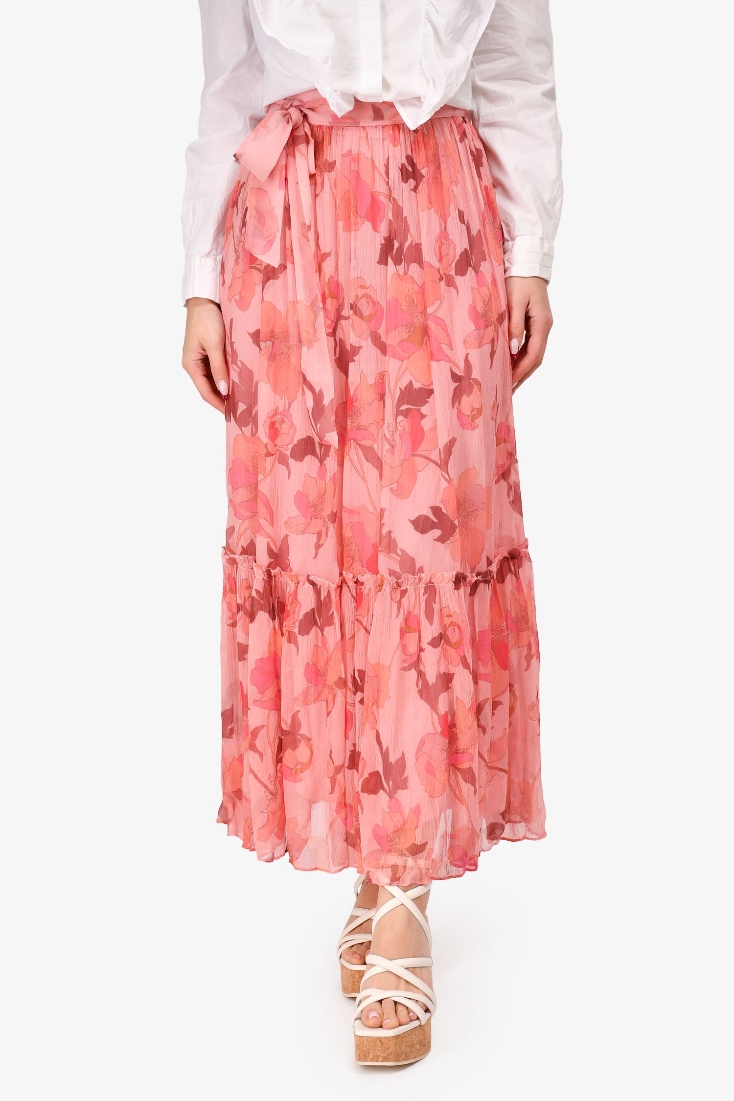 Zimmermann Pink Floral Silk Midi Skirt Size 0
