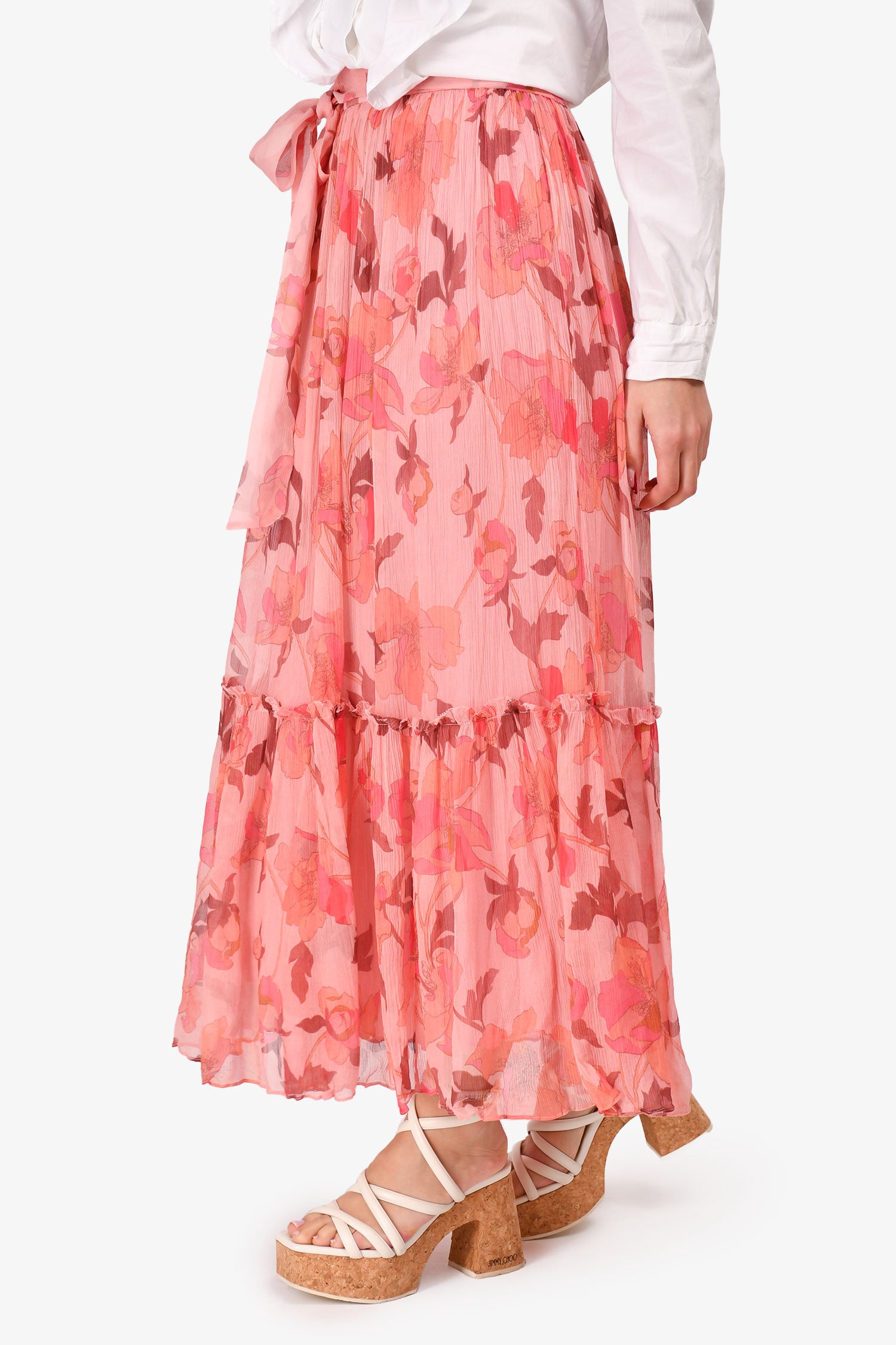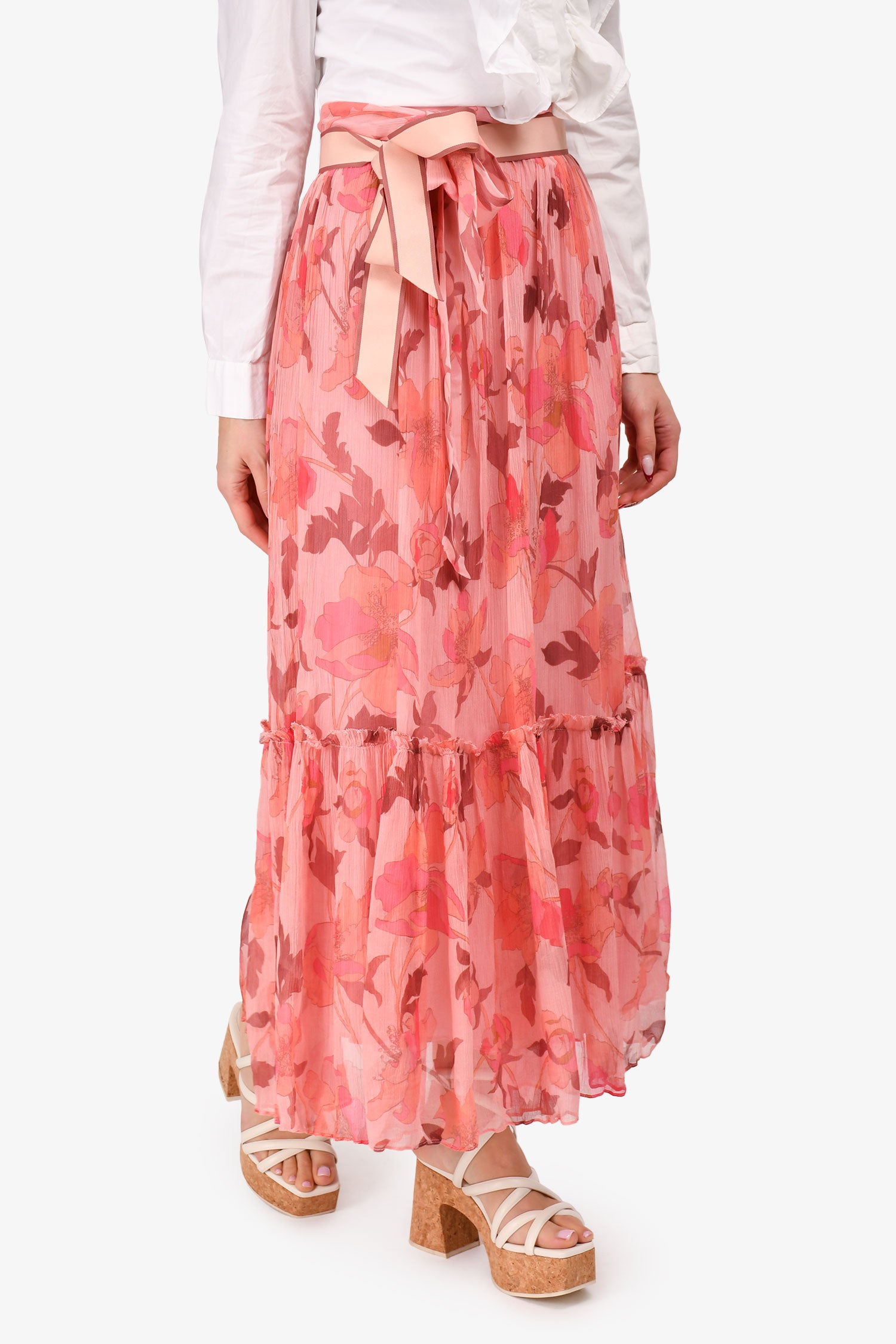 Refresh availabilityZimmermann Pink Floral Silk Midi Skirt. Concealed zipped fastening at the back. Silk floral overlay. Lined interior. Grosgrain belt. Like-printed silk belt. Tonal stitching.