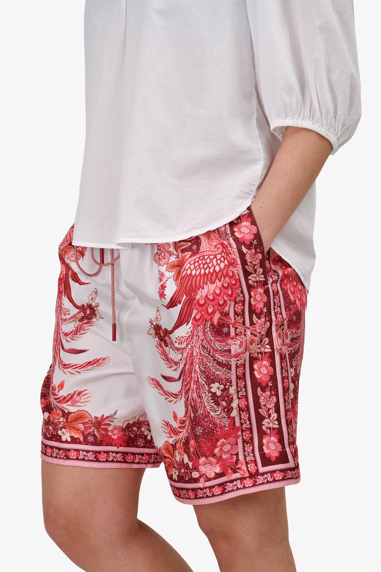 Zimmermann Pink/White Silk Floral Printed Drawstring Shorts Size 2
