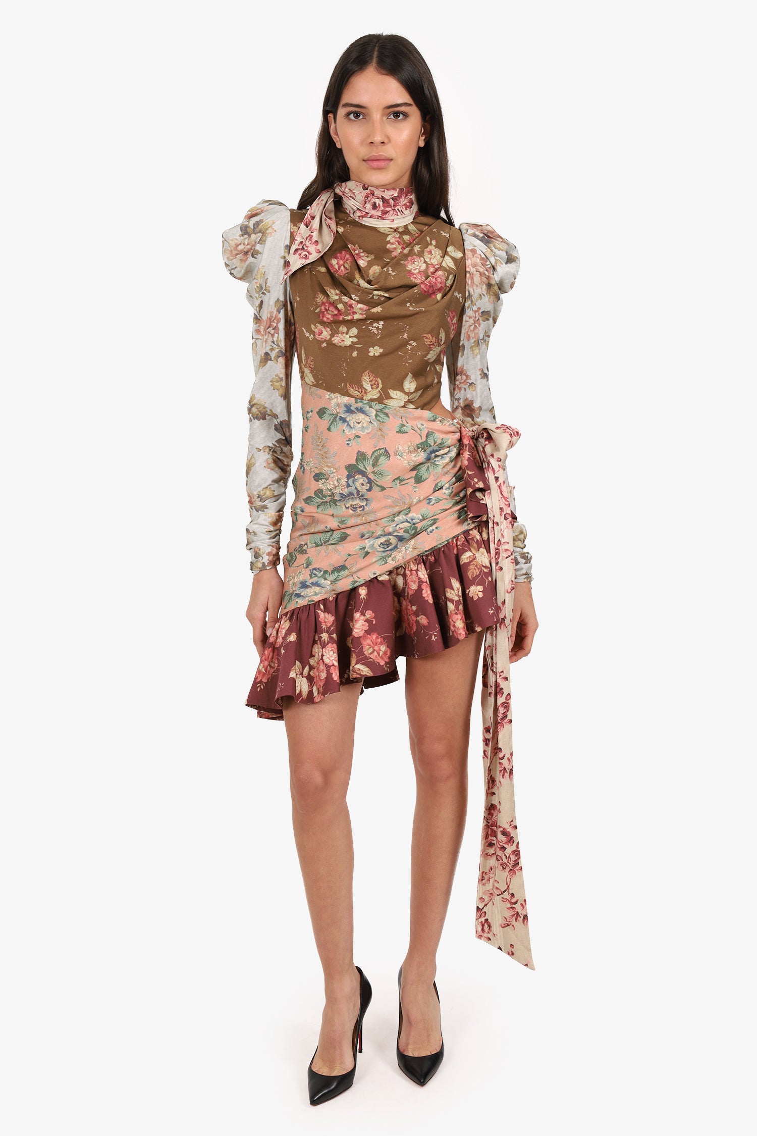 Refresh availabilityZimmermann Pink/Multicolour Floral Cut-Out Mini Dress. Slip-on. Round neckline with tie-up closure. Rear zip closure. Sleeve cuffs with zip closure. Lined interior. Tonal stitching.