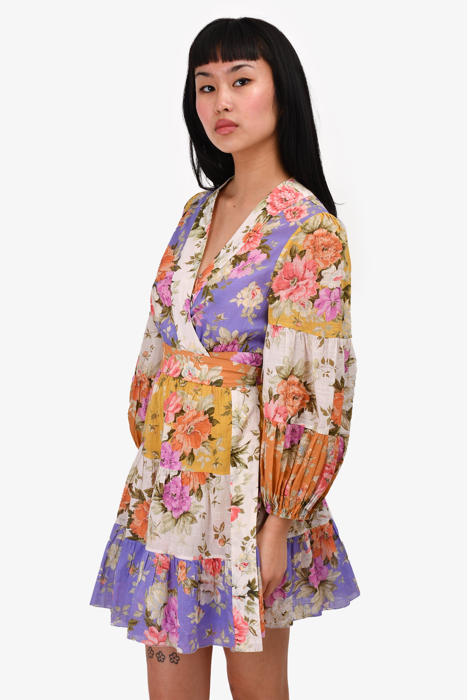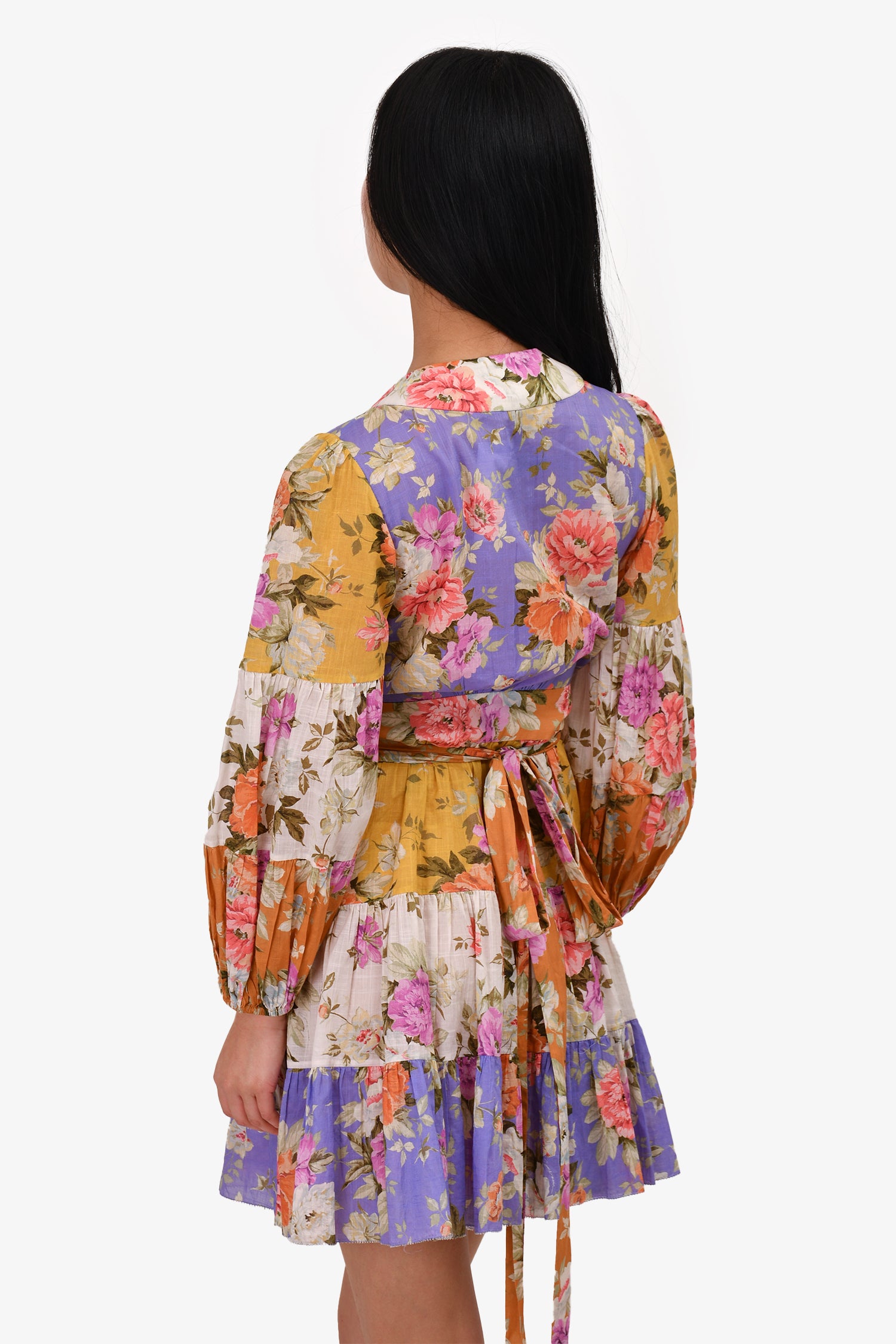 Zimmermann Purple/Yellow Floral Cotton 'Pattie' Wrap Mini Dress Size 1
