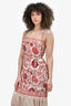 Zimmermann Red/Beige Floral Printed Fringe Hemmed Dress Size 1