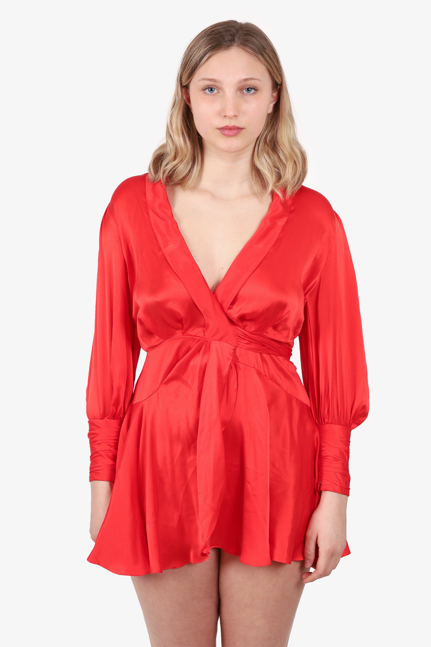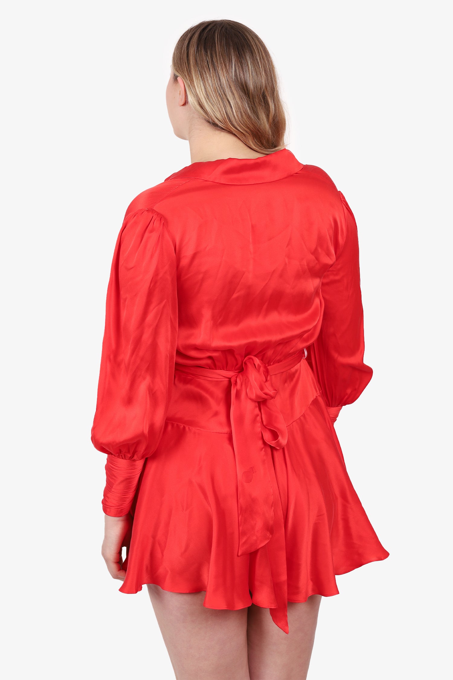 Refresh availabilityZimmermann Red Silk Wrap Mini Dress. Wrap neckline. Zip closure on cuffs. Tonal stitching.