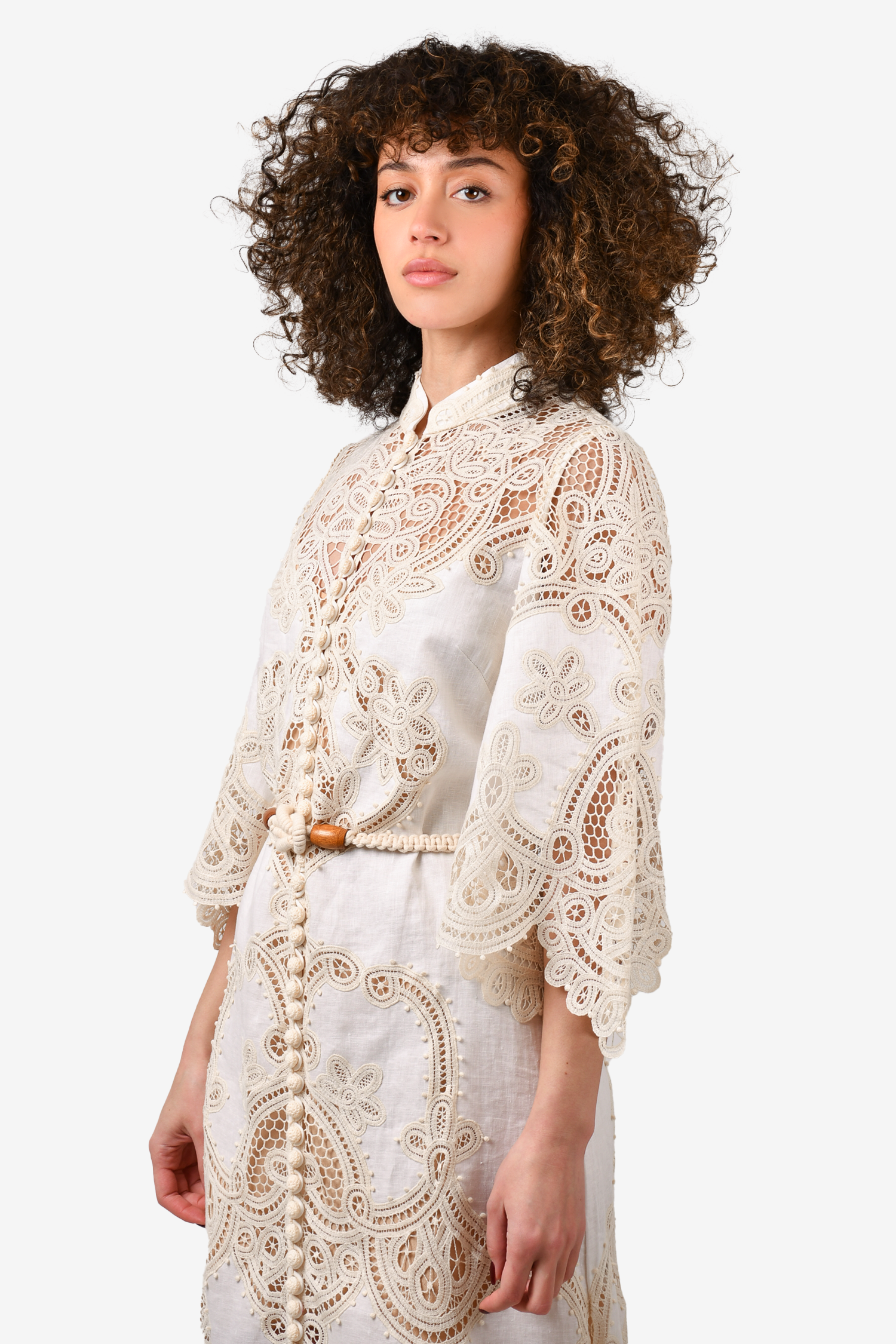 Zimmermann White Linen Crochet Lace Midi Dress Size 1