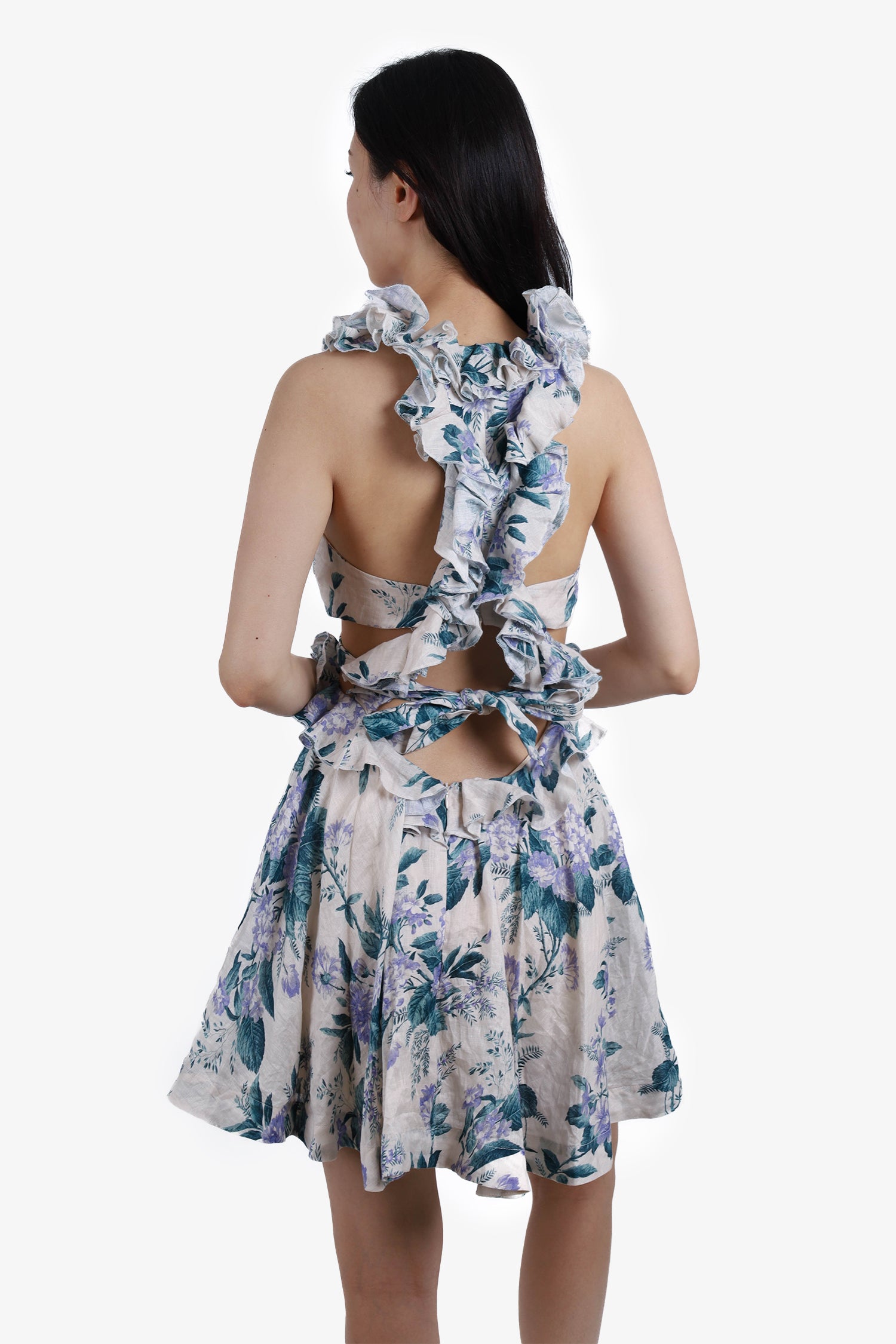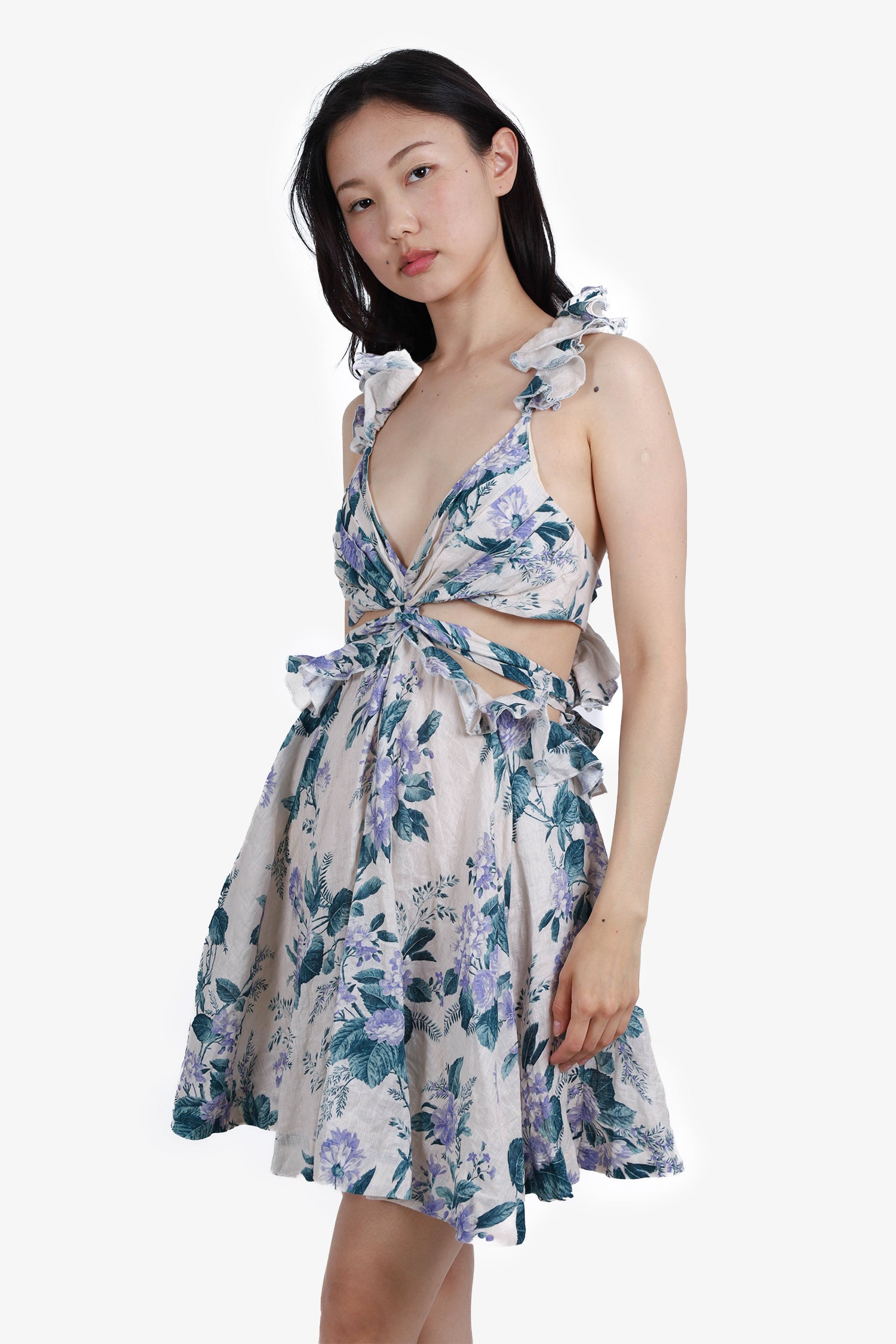 Refresh availabilityZimmermann White/Multicolour Cassia Floral Print Cut-Out Mini Dress. Rear zip closure. Tonal stitching.