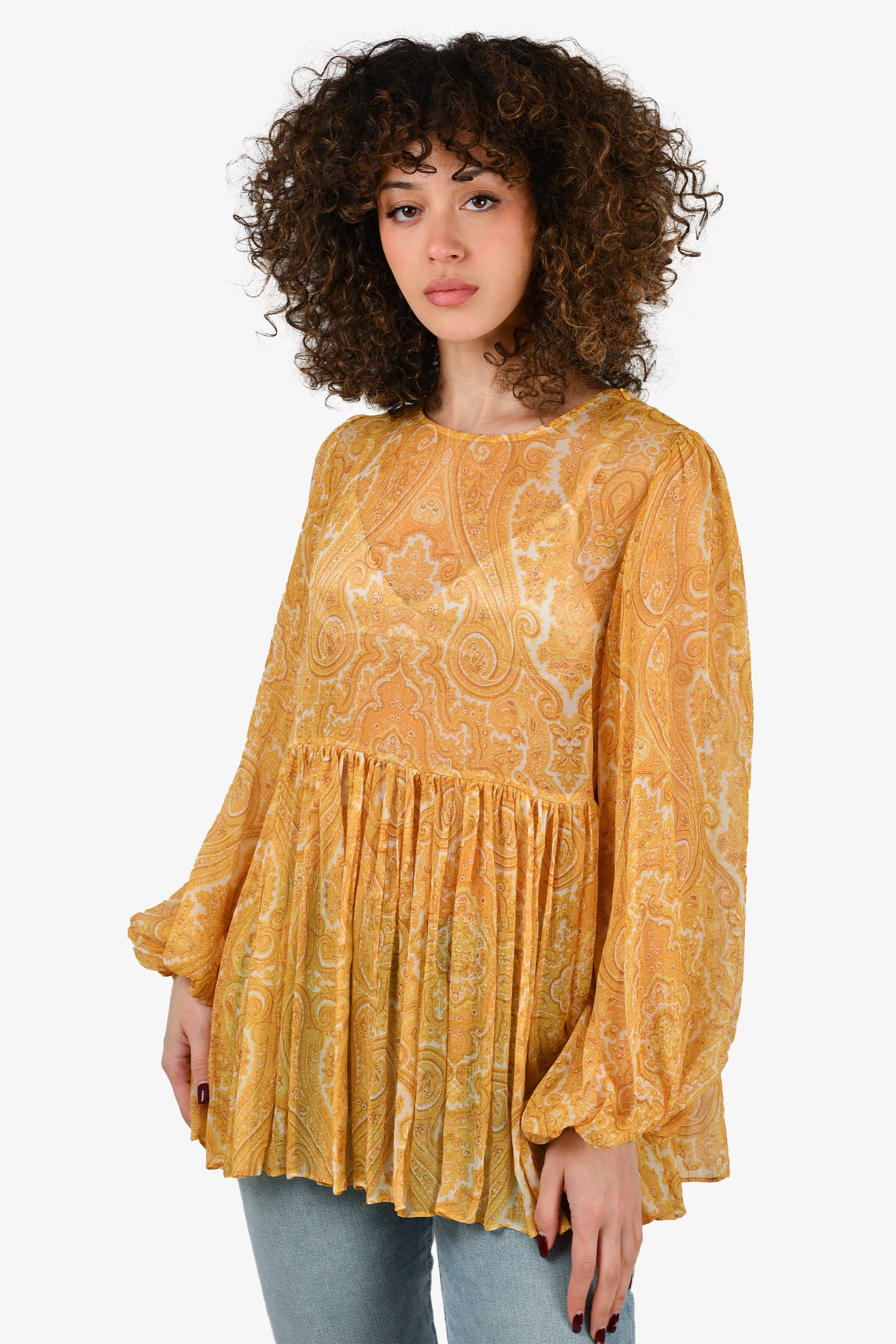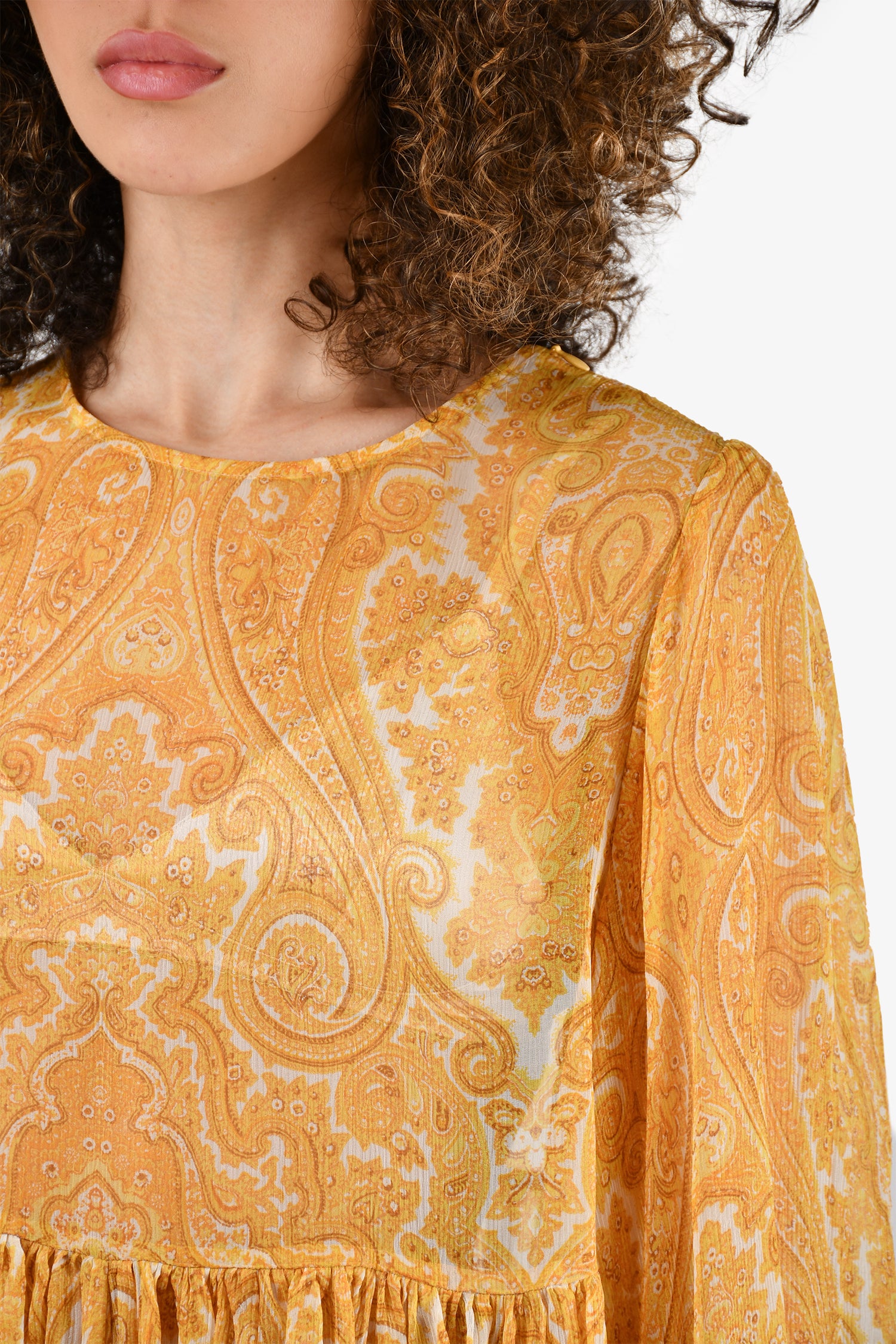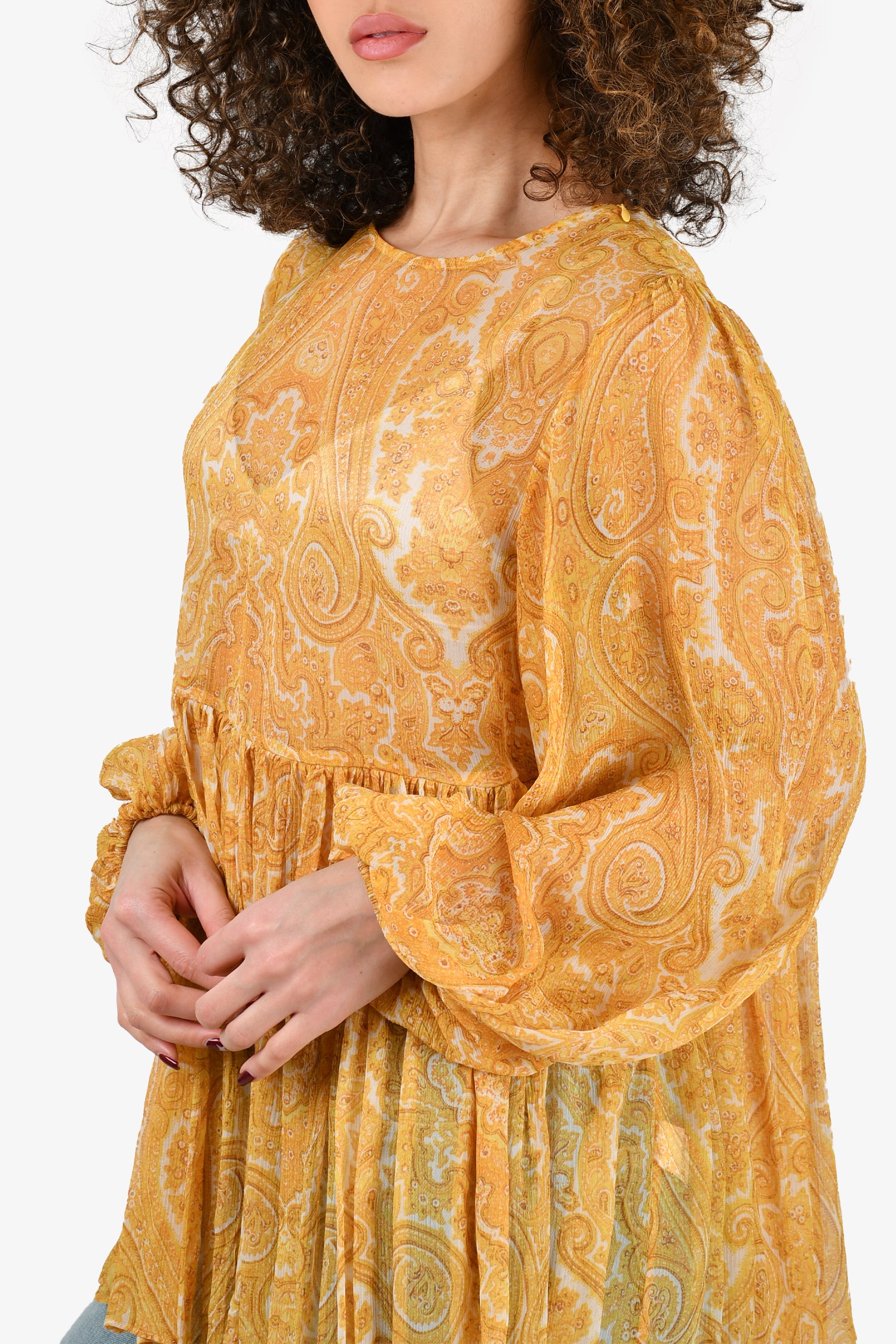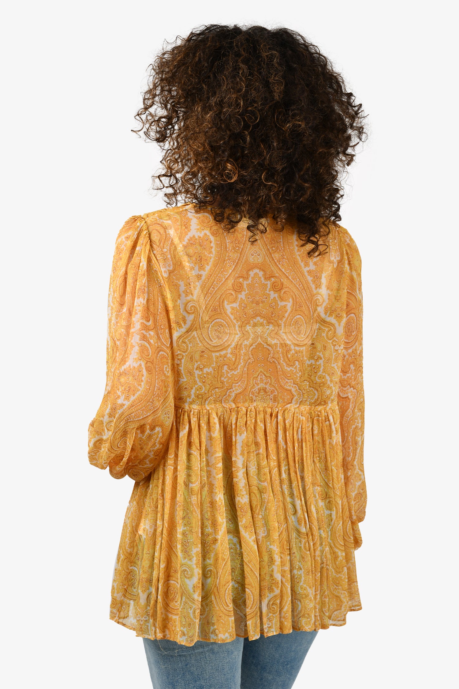 Refresh availabilityZimmermann Yellow Paisley Sheer Silk Babydoll Top. Round neck. Zip closure on the left sleeve. Elasticized cuffs. Tonal stitching.