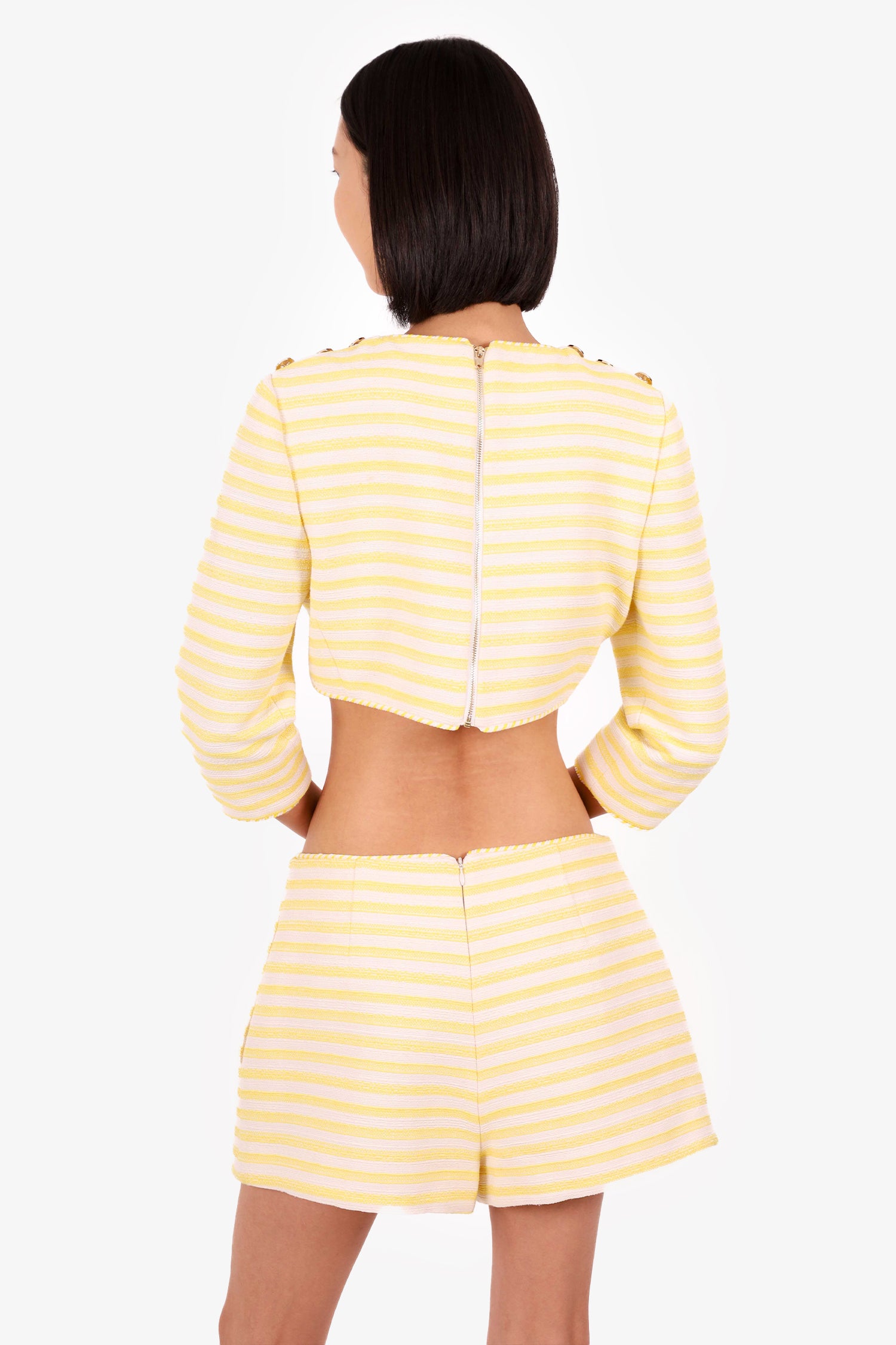 Zimmermann Yellow/White Striped High Tide Cropped Top With Skort Set Size 2
